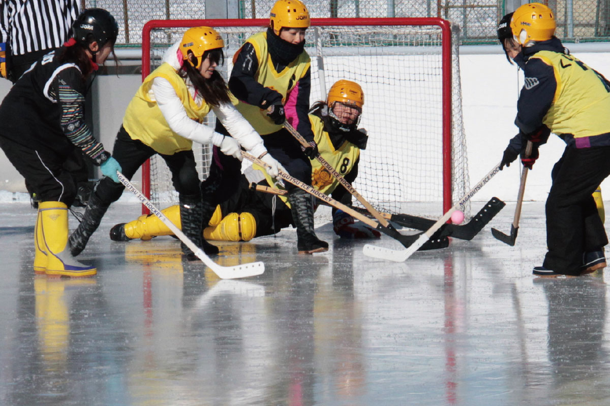 1978年に冬の運動不足解消のために、誰もが楽しめる釧路町発祥のニュースポーツとして誕生。毎年1月に「町民長ぐつアイスホッケー大会」を開催し、今では約100チーム、約1,000人が参加しています。また、2月に行われる「全日本長ぐつアイスホッケー選手権大会」には、道外チームも参加しています。