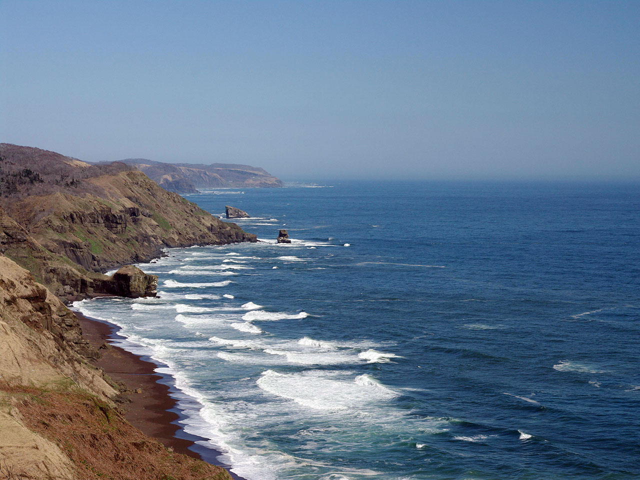 昆布森市街からシレパ(尻羽)岬の中間に位置し、連なる断崖の海岸線とロウソク岩、タコ岩などの彫刻的な美しさが壮観です。駐車場より一望できます。